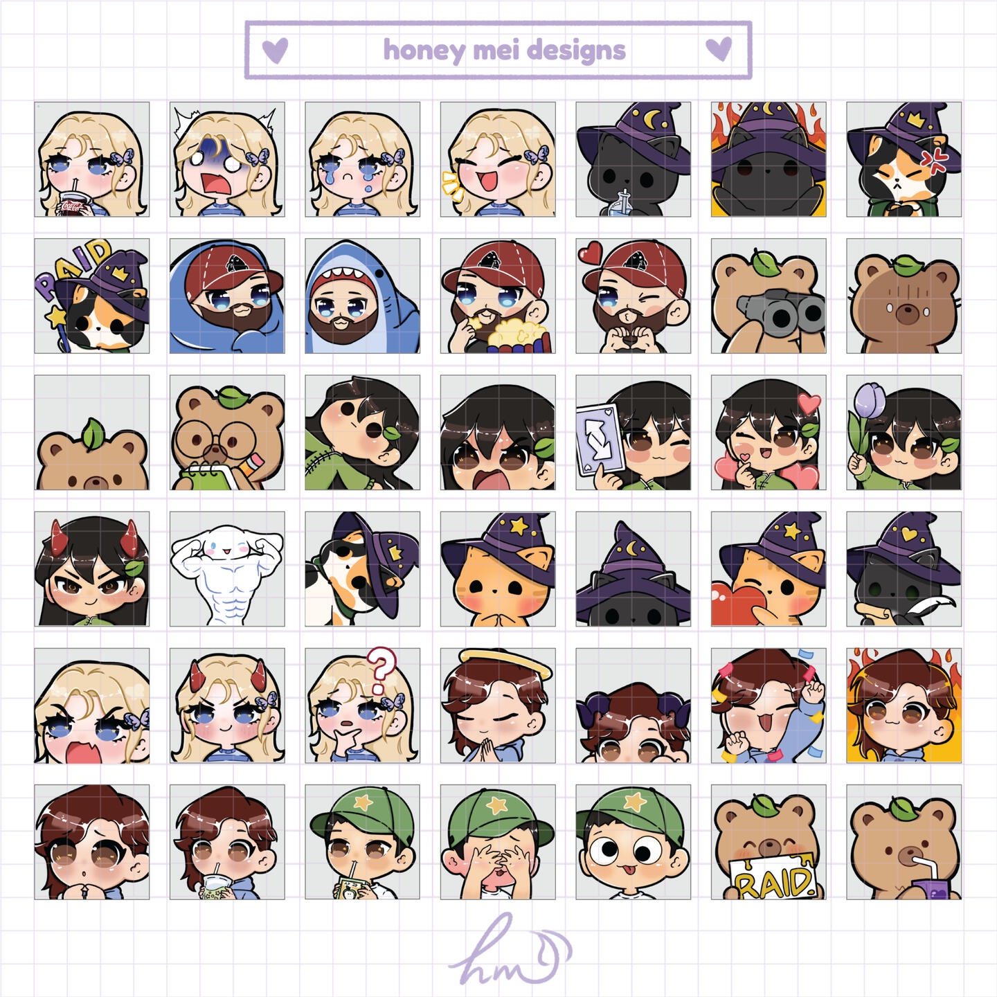 On Twitch, use the "artist attribution" tool when uploading emotes and tag me as honey_mei _